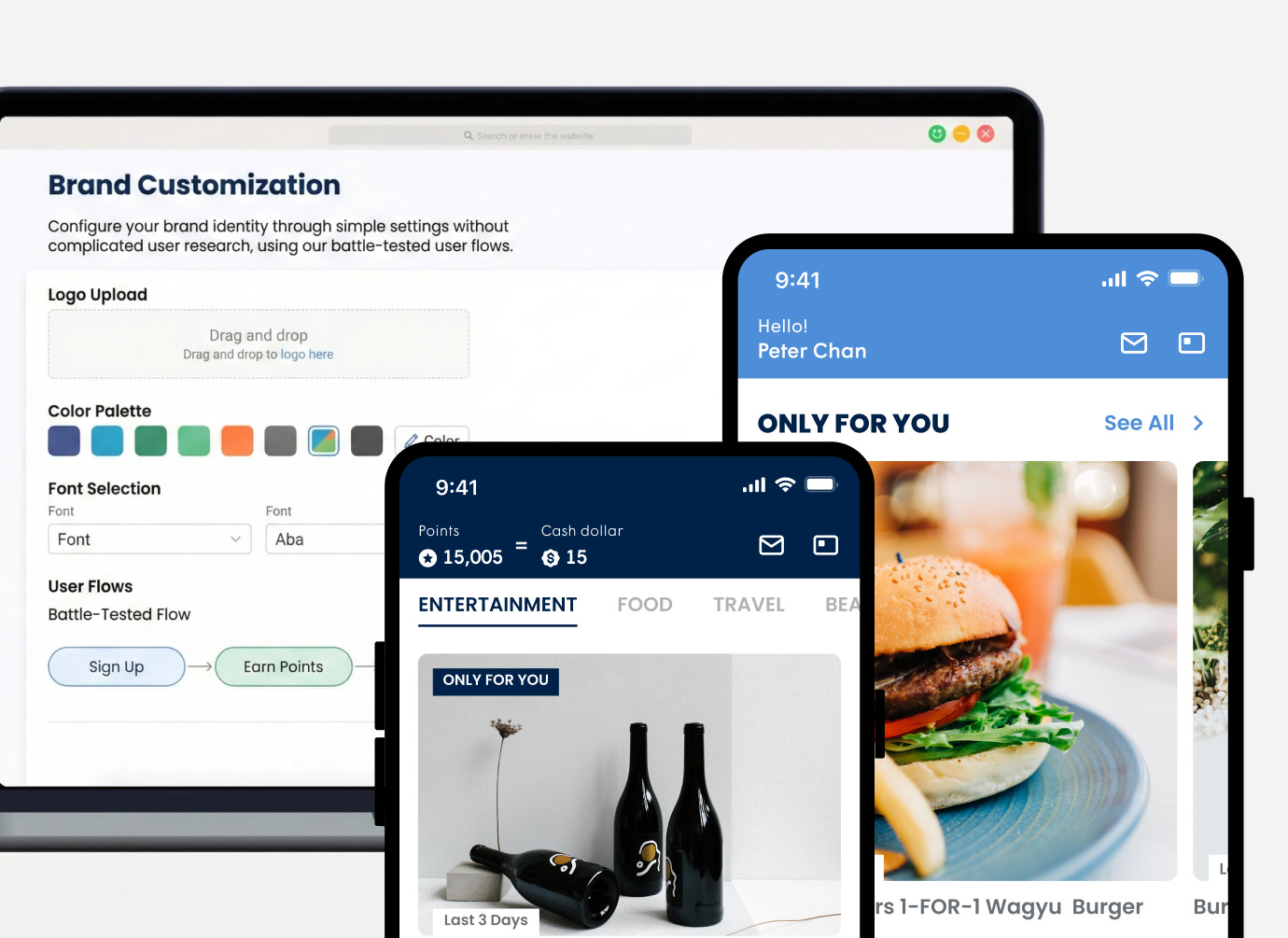 Configure your brand identity through simple settings without complicated user research, using our battle-tested user flows